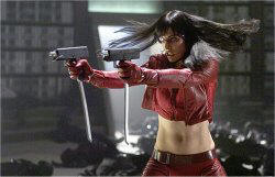 Ultraviolet – in which Jovovich plays a genetically-enhanced warrior who must protect herself and others like her from their creators who have come to fear them – is just the latest in a line of films with gun-totting, fist-swinging characters that Jovovich has brought to the screen. The actress landed one of her first major film roles opposite Bruce Willis in the 1997 science-fiction actioner The Fifth Element. More recently, she was the steely-eyed, zombie exterminator Alice in Resident Evil (2002) and Resident Evil 2 (2004).