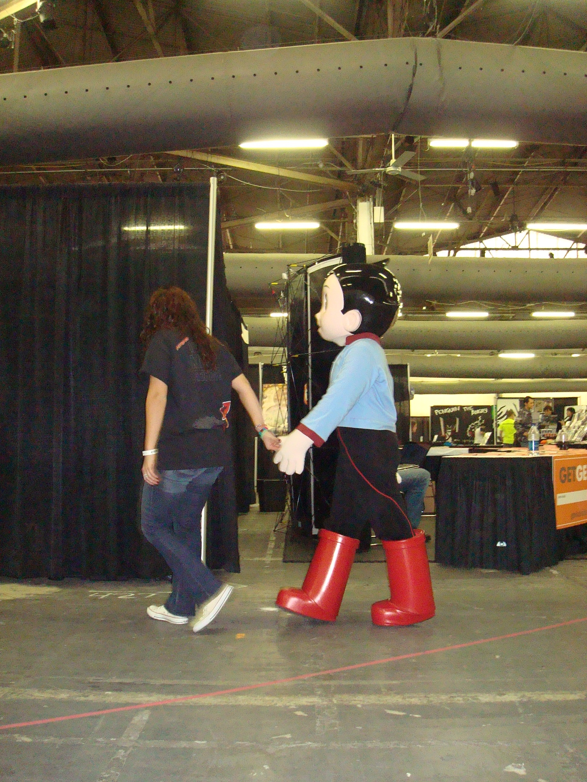 Astro Boy being lead away. No, he wasn’t causing a disturbance. He’s just going on break. The Wizard booth had a plethora of Astro Boy swag, including posters, pins and pens.