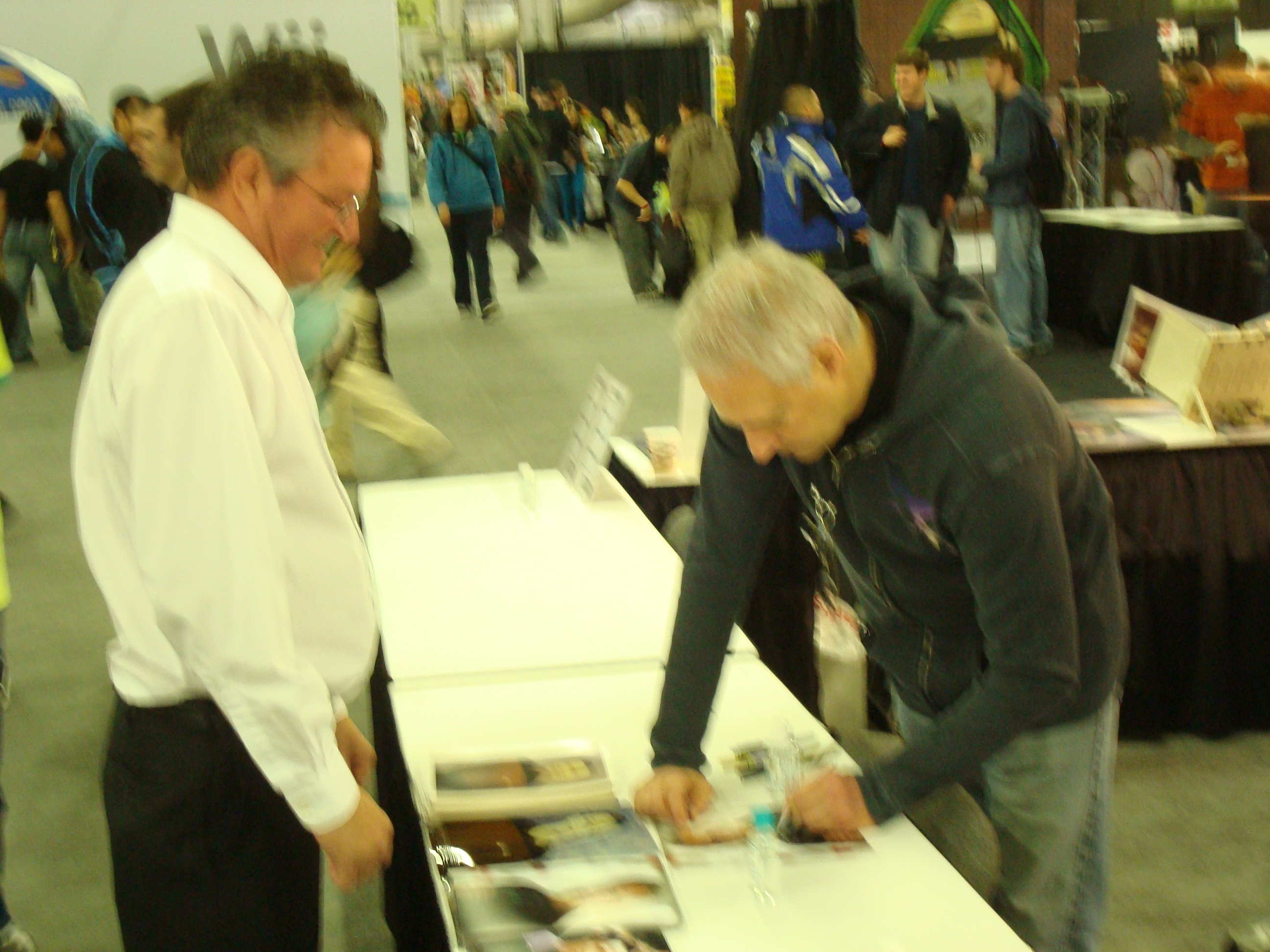 Brent Spiner signing for a fan at the Lightspeed Fine Art booth.