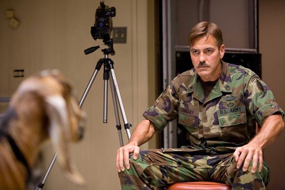 With his marriage falling apart, newspaper man, and book author Ronson-substitute, Bob Wilton (Ewan McGregor) stumbles across what may be the story of the year- That the military had spent years and millions of dollars on an initiative designed to produce soldiers with super powers. Pursuing a lead all the way to the Persian Gulf, he has a chance encounter with Lyn Cassady (George Clooney, sporting a mustache that makes him look like Dennis Farina), who offers to take the journalist into war torn Iraq to supply proof of the top-secret program’s existence.