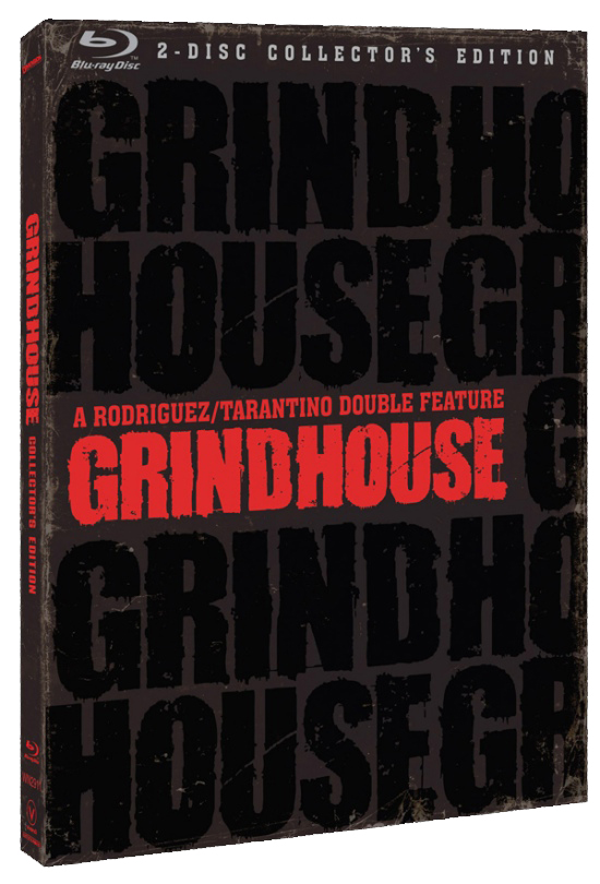 The DVD and blu-ray releases will be two disc sets with the first disc showcasing Grindhouse in its original theatrical format* with a host of extras on the second disc. The Blu-ray will also feature additional extras. You can read the full rundown of extras underneath the blu-ray box art.