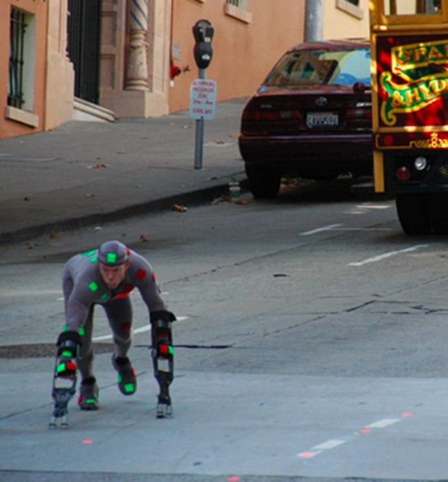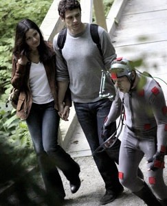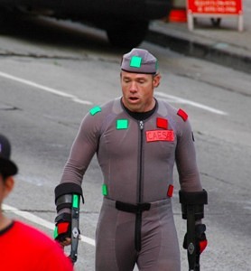 Some photos of location shooting in San Fransisco for the upcoming Planet Of The Apes reboot, Rise Of The Apes has surfaced. They’re nothing terribly spoilerish. They are pictures of actor Andy Serkis and a stunt double in motion capture suit and the actual computer-generated ape characters will be based on their on-set performance. Serkis is an old hand at this kind of acting having performed Gollum in Peter Jackson’s Lord Of The Rings trilogy and Kong in Jackson’s King Kong remake.