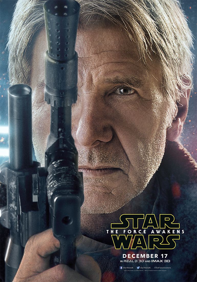 We’re forty-two days out from the Thursday of Star Wars: The Force Awakens opening weekend and Disney has released five new posters highlighting specific characters from the film, specifically Harrison Ford’s Han Solo, Carrie Fisher’s Leia, Daisy Ridley’s Rey, John Boyega’s Finn and Adam Driver’s Kylo Ren. Interestingly enough, no look at Mark Hammil’s Luke Skywalker. That is a move that is sure to fuel the ongoing internet rumor mill about the character’s continuing absence from the upcoming film’s marketing. This poster release does, though, give us our first good look at Carrie Fisher as Leia. Interestingly, the background of the Leia poster is reminiscent of the Yavin IV command center seen in the very first Star Wars film, suggesting that she is still hard at work with the New Republic in a similar military command position.
